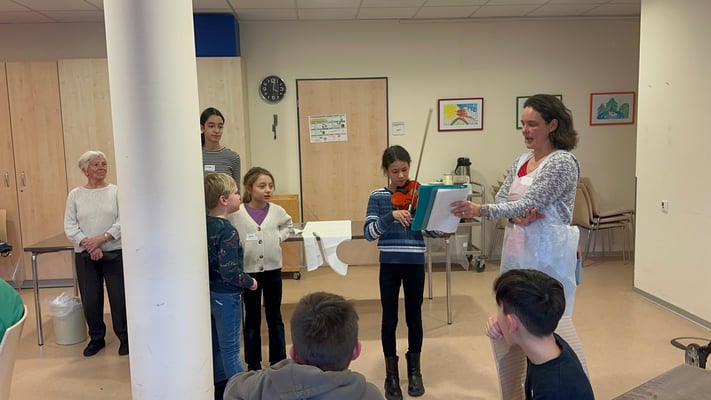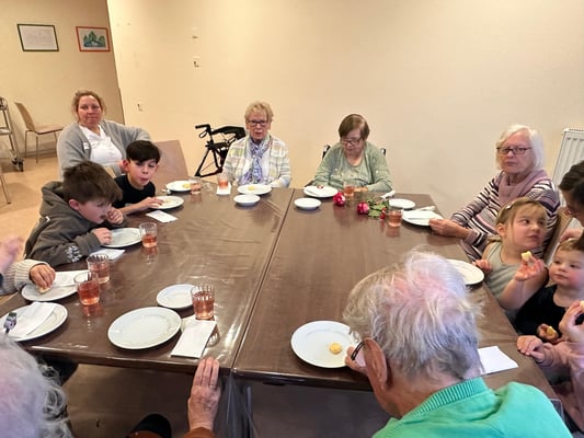 Die Seniorinnen und Senioren freuten sich wie immer auf die gesellige Runde, bei der sie – sei es im Rollstuhl oder ohne – an den Tischen Platz nehmen konnten, um mit den Kindern gemeinsam Plätzchen zu backen oder einfach die heitere Atmosphäre zu genießen. In tatkräftiger Unterstützung durch das Betreuungsteam der Seniorenresidenz rund um dessen Leiterin Coraly Nordhoff wurde Teig geknetet, gerollt und mit der Gabel verziert. Nach dem Backen blieb Zeit, um die Leckereien bei Kaffee oder Saft und guten Gesprächen zu genießen. Doch nicht nur das Backen sorgte für Freude: Drei der Kinder trugen ein Wintergedicht vor, und auch auf der Geige vorgetragene Weihnachtslieder luden noch zum Mitsingen ein. Der Nachmittag war wieder einmal ein voller Erfolg – Alt und Jung hatten viel Spaß und freuten sich an den Begegnungen.