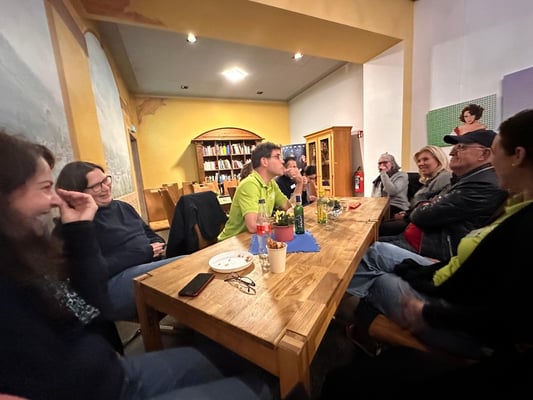 Nach dem Film lud der Verein zum Austausch im Nebenraum ein, was viele Gäste nutzten, um mehr über das Vereinsleben zu erfahren. Der Vorstand bedankte sich ausdrücklich beim Modernen Theater Weinheim für die Kooperation, die dieses Event möglich machte.