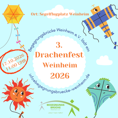 In den Räumlichkeiten des Luftsportvereins Weinheim empfangen wir unsere kleine und große Gäste. Der Drachenbau beginnt wieder um 11 Uhr unter Anleitung unserer erfahrenen Profis. Anschlißend hoffen wir, die Drachen gemeinsam in den Himmel steigen lassen zu können.