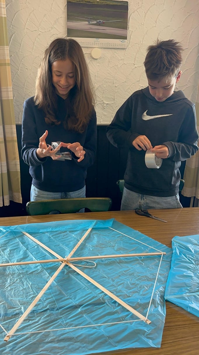 Bildschirm kreativ werden, ihre Drachen individuell gestalten und sie bei bestem Wetter steigen lassen. Das Gelände des Luftsportvereins bot natürlich ideale Bedingungen für eine solche Aktion.